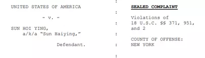Sun is charged with one count of conspiring to act as an agent of a foreign government without notifying the Attorney General, which carries a maximum sentence of five years in prison, and one count of acting as an agent of a foreign government without notifying the Attorney General, which carries a maximum sentence of 10 years in prison. The statute Sun was charged under is similar to the Foreign Agents Registration Act, which has become a DOJ enforcement priority in recent years.